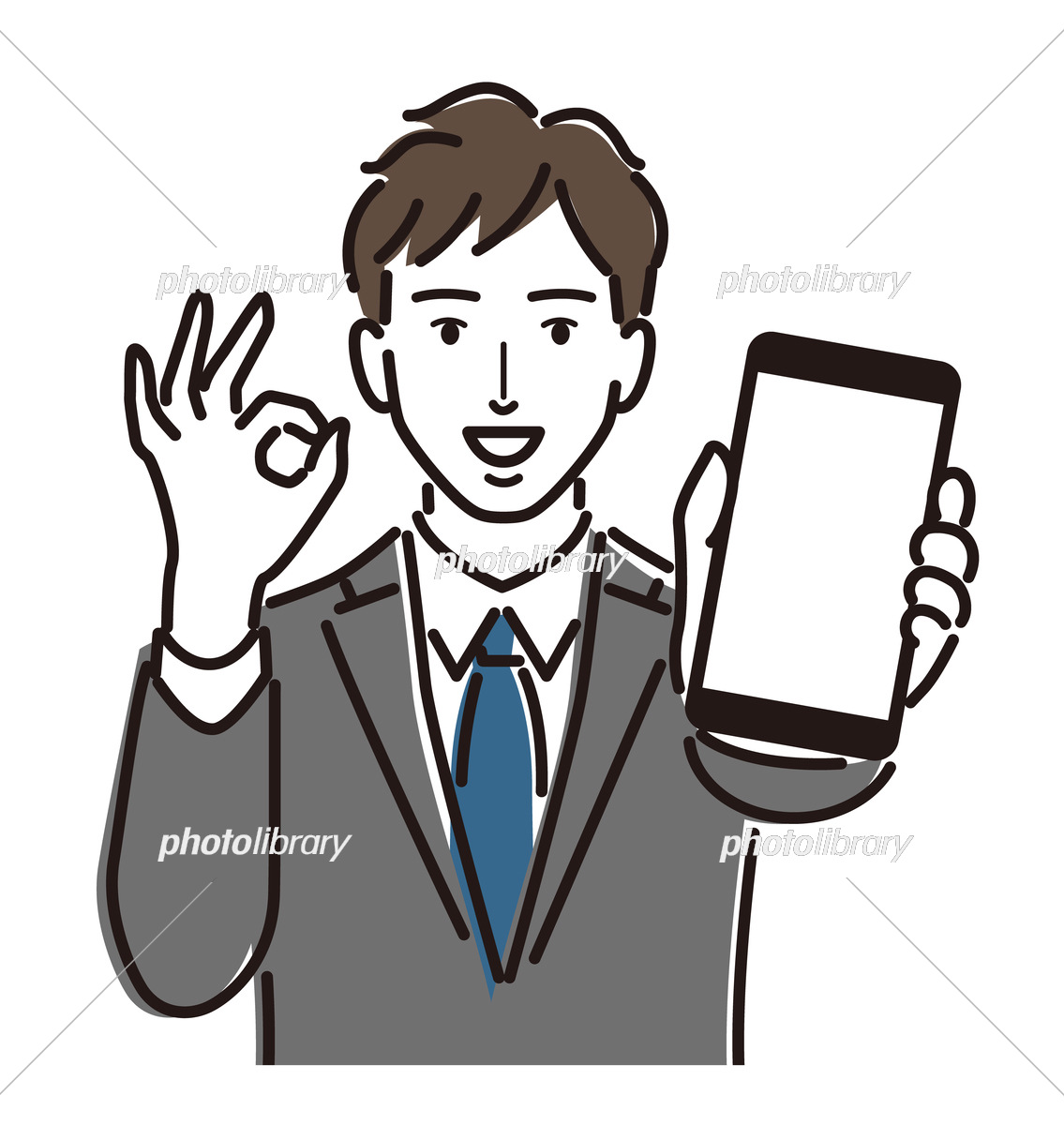 スマホの画面を見せ オーケーを出す男性 イラスト素材7456003- フォトライブラリ。