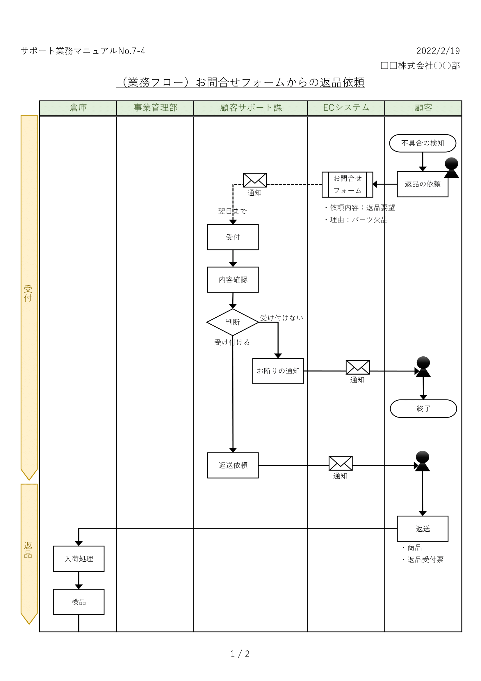 業務フローチャートの書き方の例 Microsoft Excelで作成-資料請求対応業務業務改革ガイド。