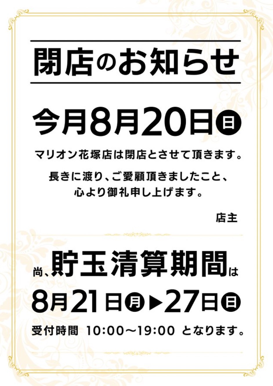 最終営業日のマリオン花塚店~或る夏の日の一日~ - YouTube。