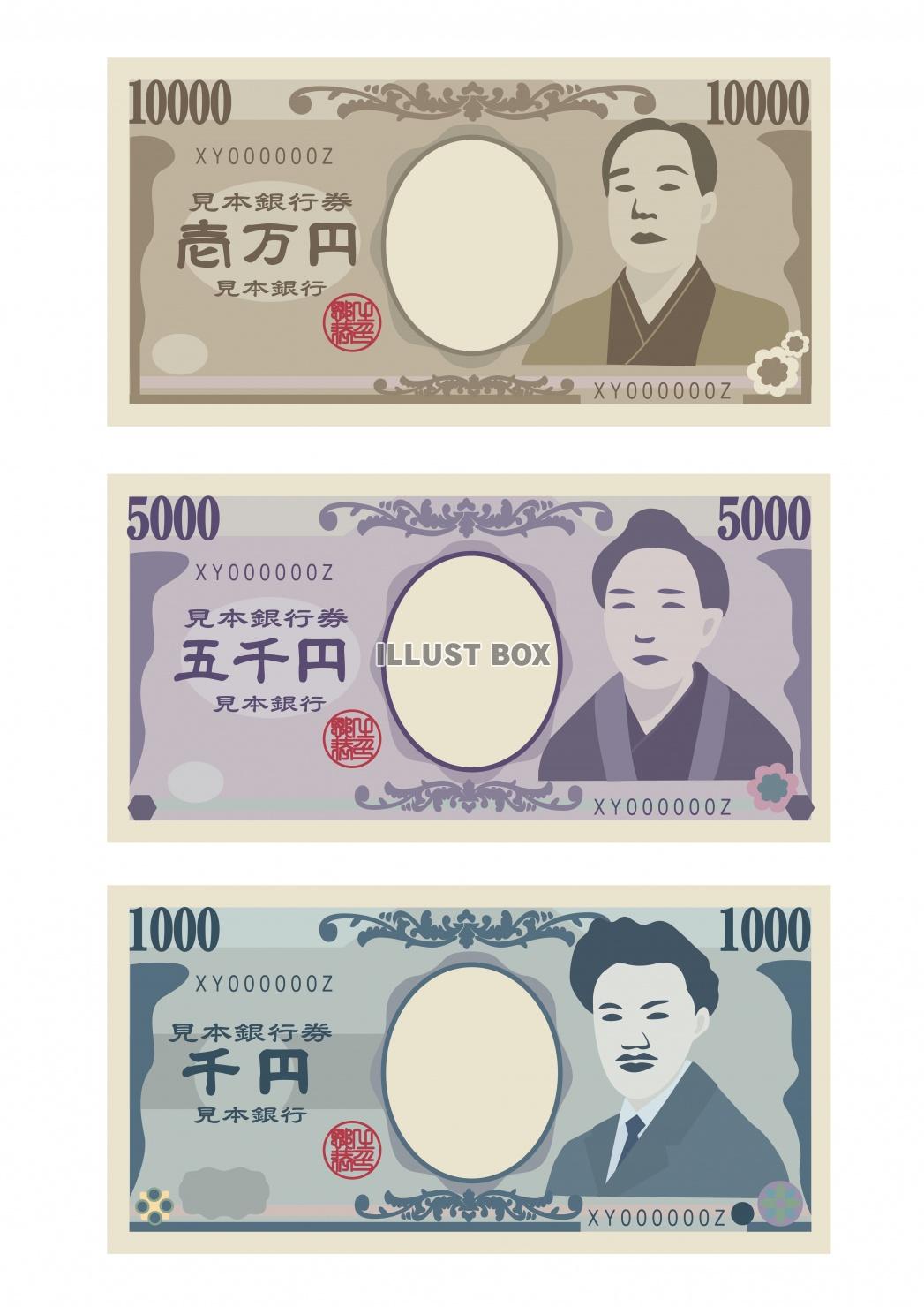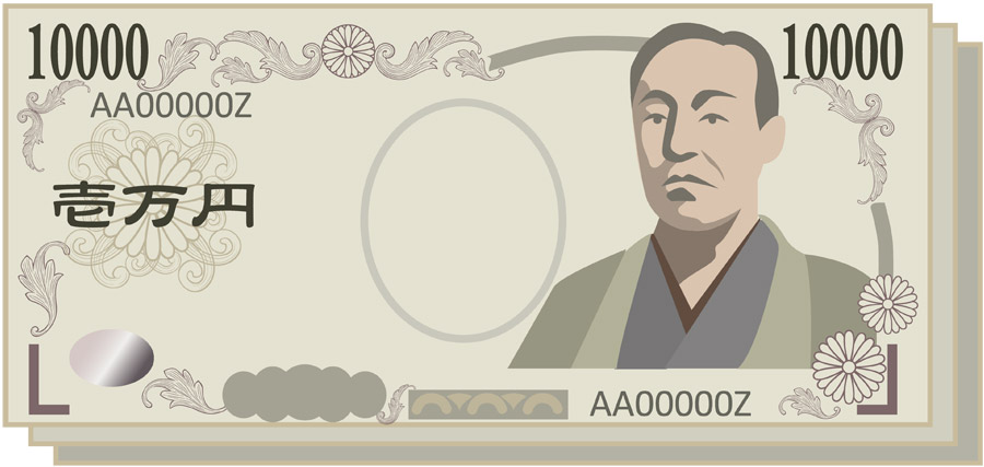 新紙幣 新一万円札 新札 お札 お金:イラスト無料。