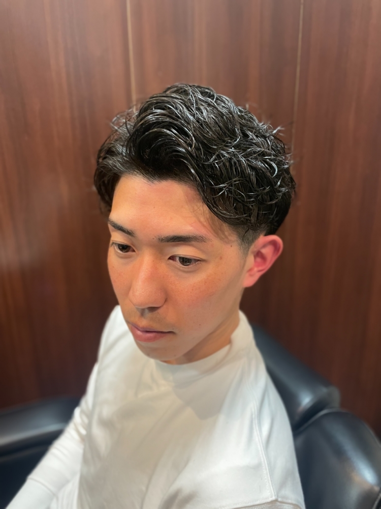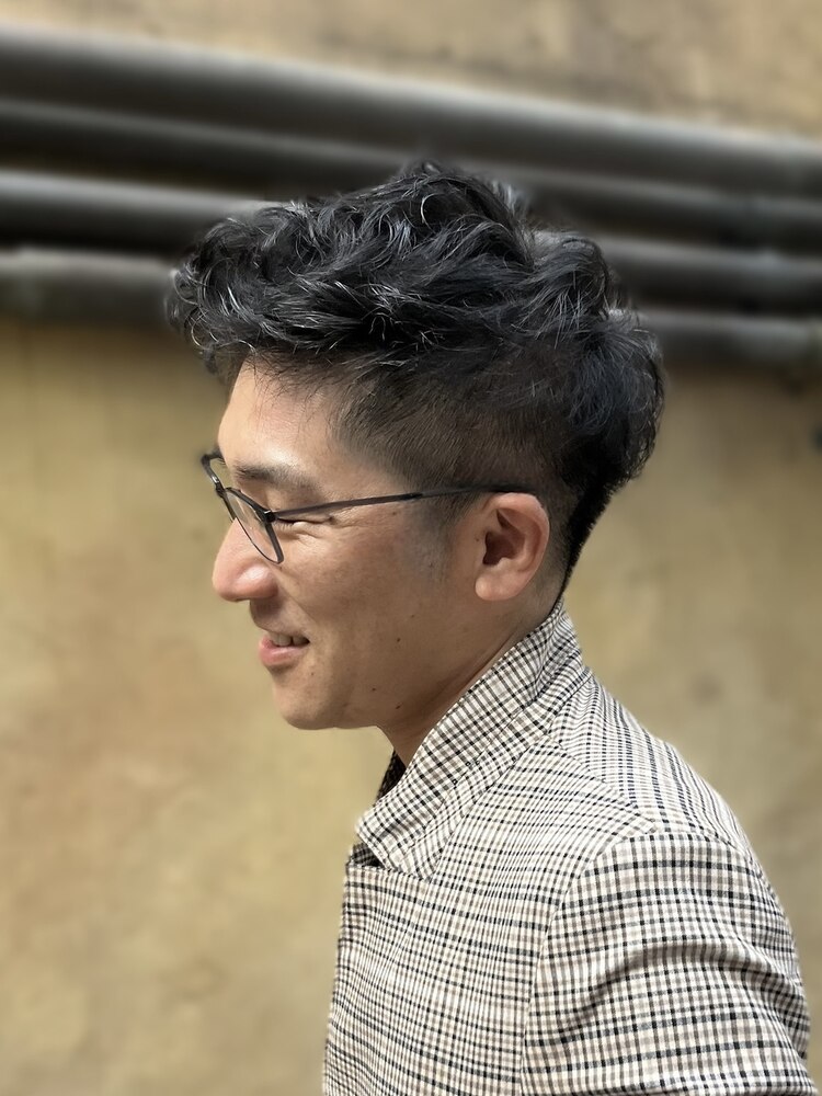 30代40代メンズナチュラルパーマ ツーブロックスタイル ビジネスヘアスタイル人形町、水天宮前の理容室、床屋 HAIR&GROOMINGYOSHIZAWA Inc ヨシザワインク。