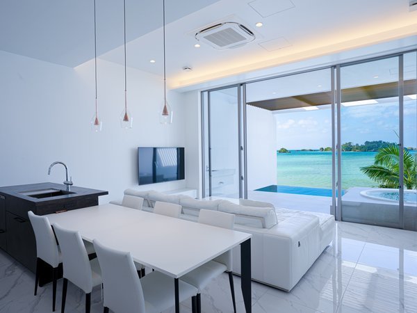 2F living E 海と空と、ひとつになる。 Villa VALIOSA ON THE BEACH 2021.04.23 GRANDOPENING 沖縄恩納村、全6棟のラグジュアリーリゾート ヴィラ ヴァリオーサVillaVALIOSAヴィラヴァリオーサokinawa沖縄恩納村resortpoolvillaリゾートビーチリゾート。