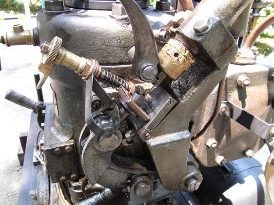 滅多に見られない焼玉エンジンの点火プラグの役目のヒートパイプはこれだ!!古い和田鉄工場製エンジン国産焼玉式発動機勉強会&運転会広島県府中市備後一宮吉備津神社 平成31年3月23日。