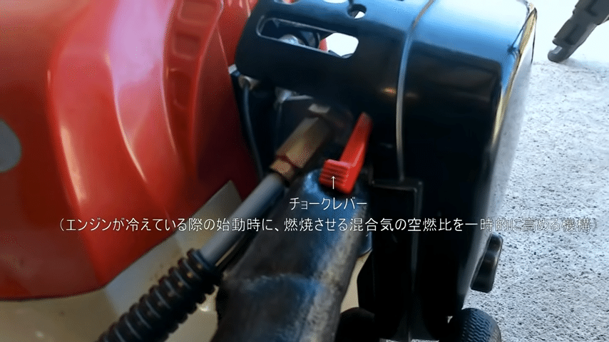 草刈機 正しいエンジン始動の方法をご紹介井上寅雄農園井上隆太朗。