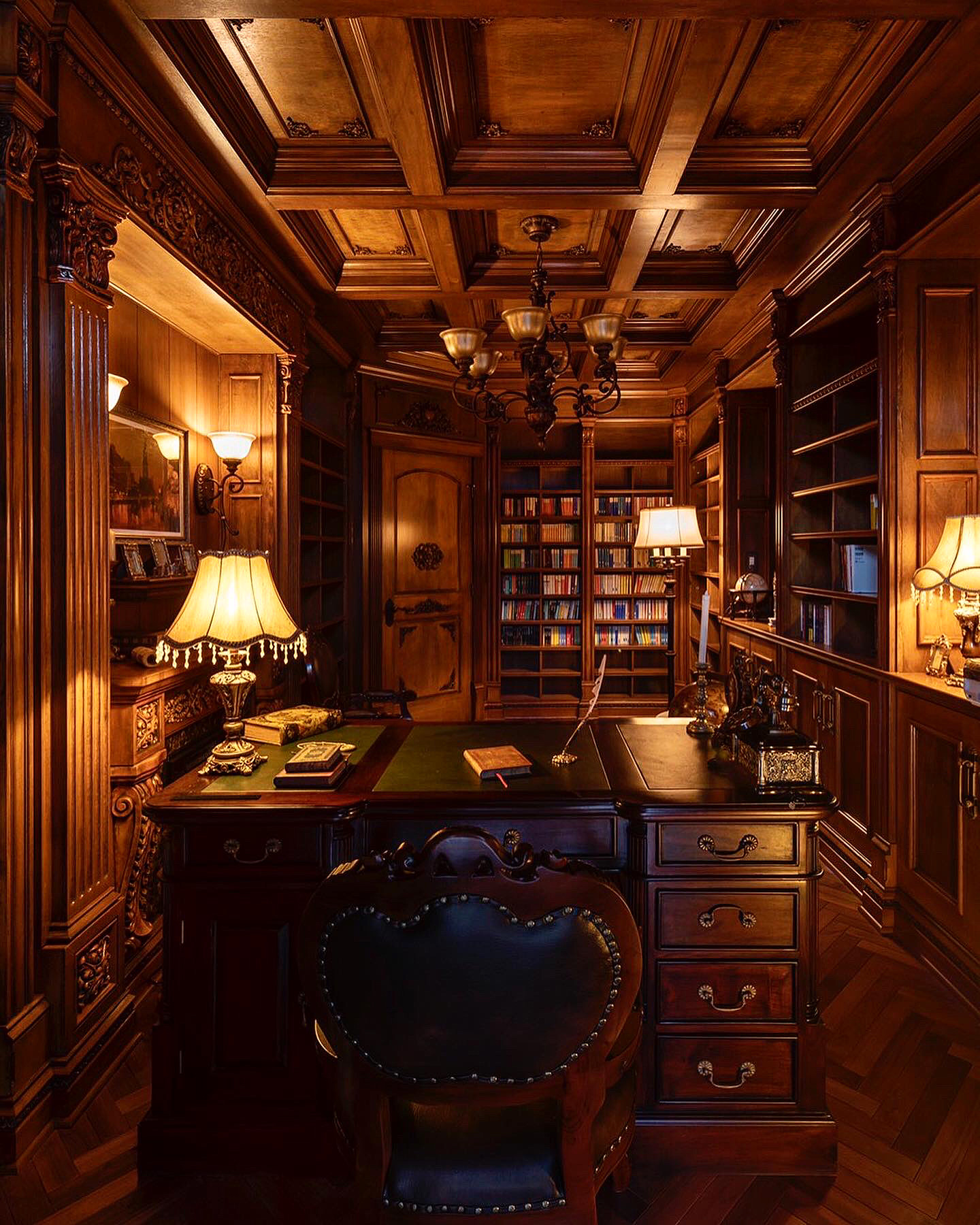 実例 -重厚感のある書斎-輸入住宅を建てるなら本物の素材と技術でつくるユニバーシス。
