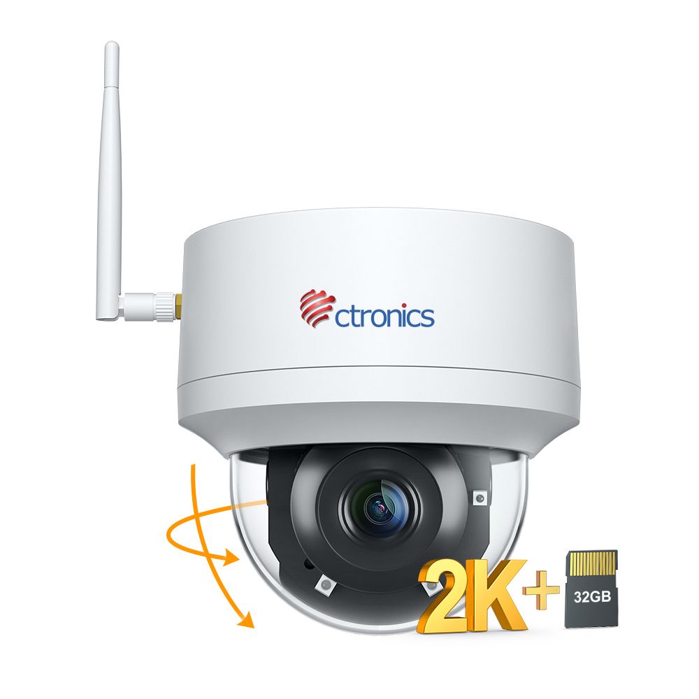 「 2K超高画質・自動追跡・SDカード内蔵 」 Ctronics 防犯カメラ 屋外 400万画素 ヒューマン検知 屋外監視カメラ WiFi 音声通話遠隔操作 パンチルト 360度カメラ ptz ワイヤレス屋外カメラ 常時録画 自動追尾 屋外防犯カメラ スマホ連動 録画機能付き 防犯ステッカー付。