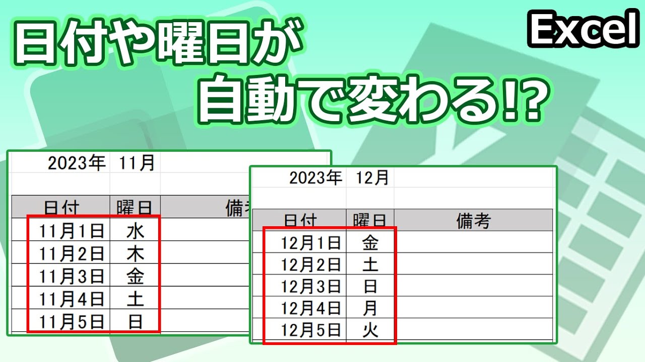 エクセル 日付を自動更新できる関数1秒で毎月更新できるカレンダーの作り方も紹介。