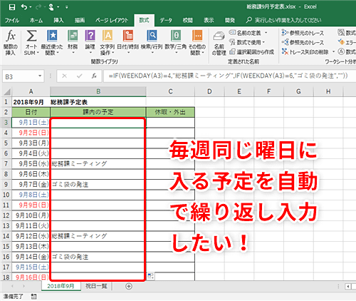 日付や曜日の入力を効率的にするExcel関数まとめ!使いまわしできるスケジュール表の作成方法も。