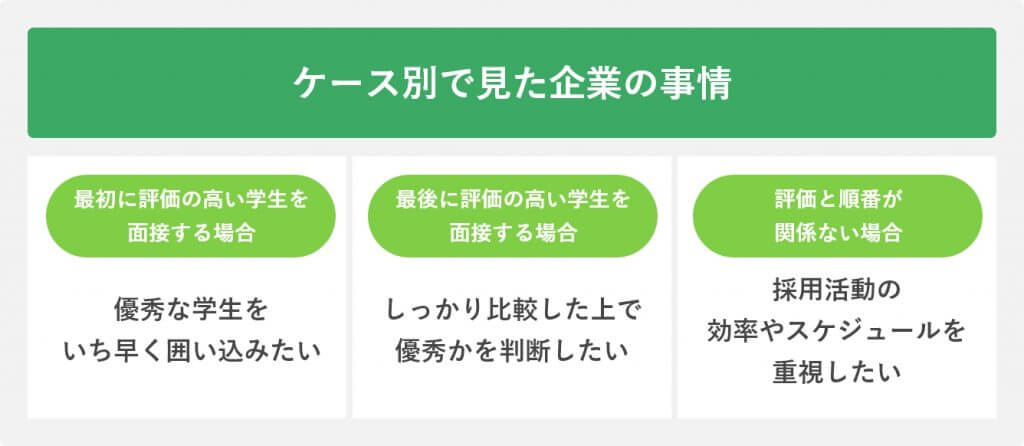面接の順番はいつが有利?期待度や選考結果との関係も解説。