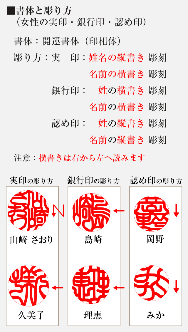 右から左」に彫られた横書きの印鑑は正しいのでしょうか? - 女性が印鑑を作る時。