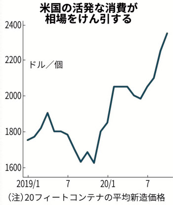 輸送用コンテナ価格上昇 3カ月で2割 北米向け需要急増 アジアで空箱足りず - 日本経済新聞。