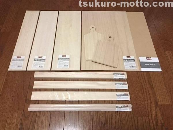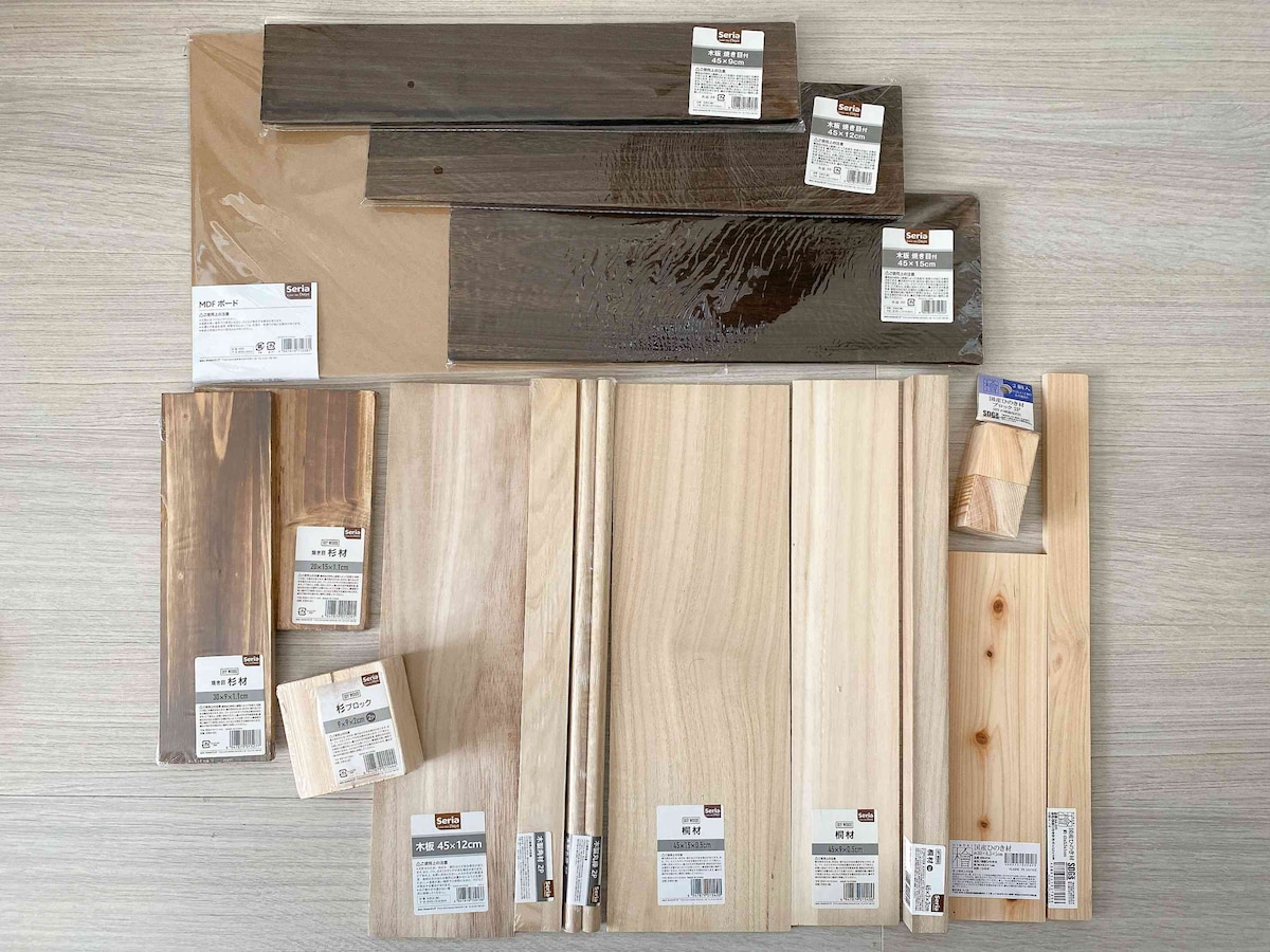 ダイソー・セリア 100均で買える木材の種類とサイズ一覧。