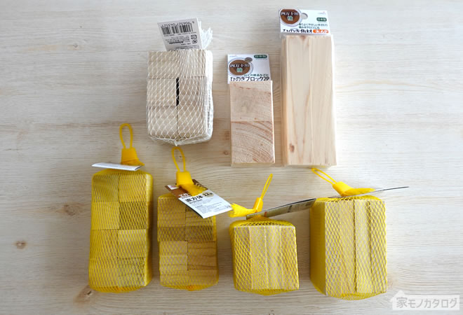 100均の木製工作材料「立方体・直方体」の商品一覧とサイズ。ダイソーとセリアで100円。