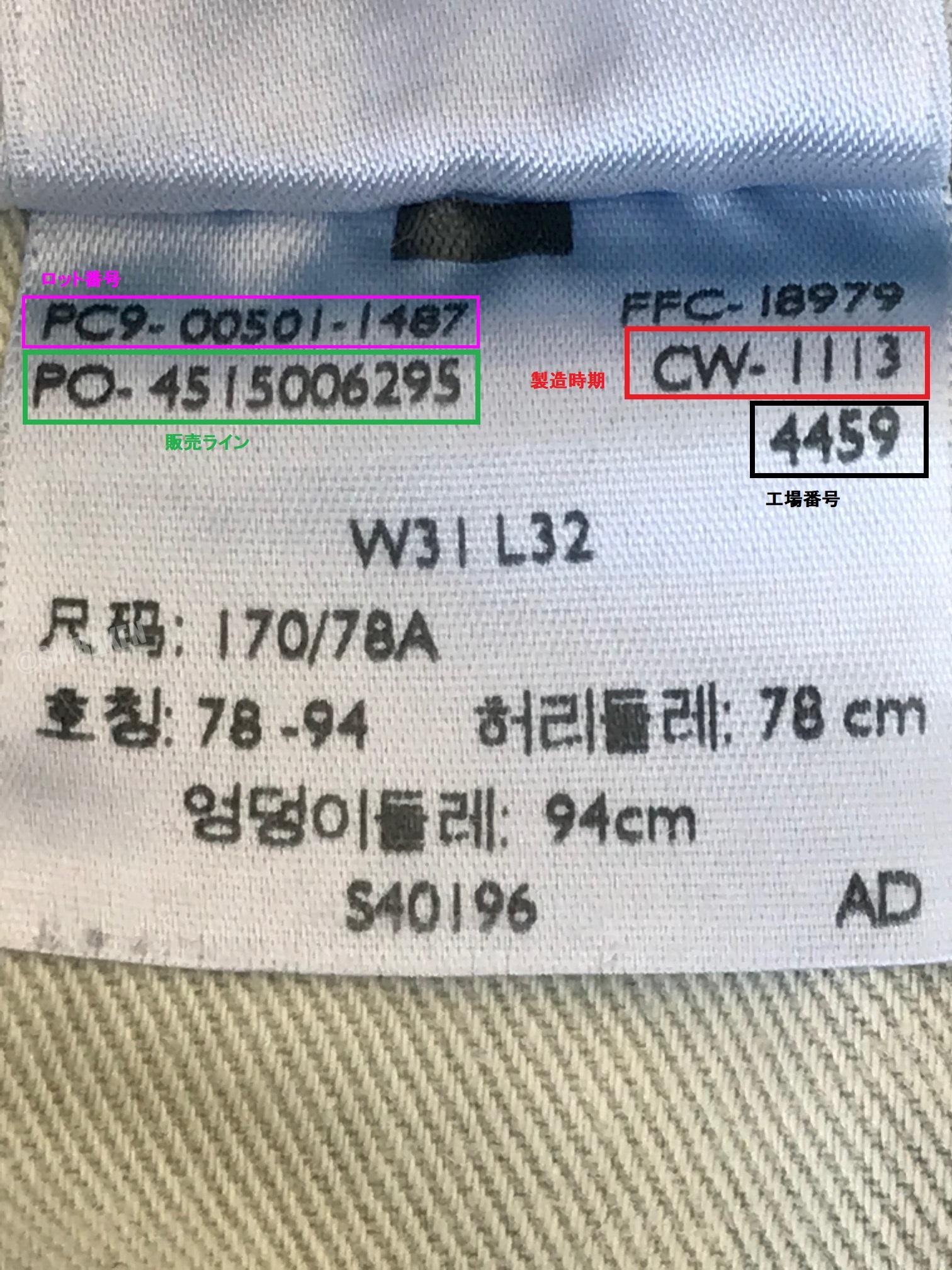 現行リーバイスのジーンズの内タグの読み方 製造年代・販売ライン・工場判別柴剣談話室。