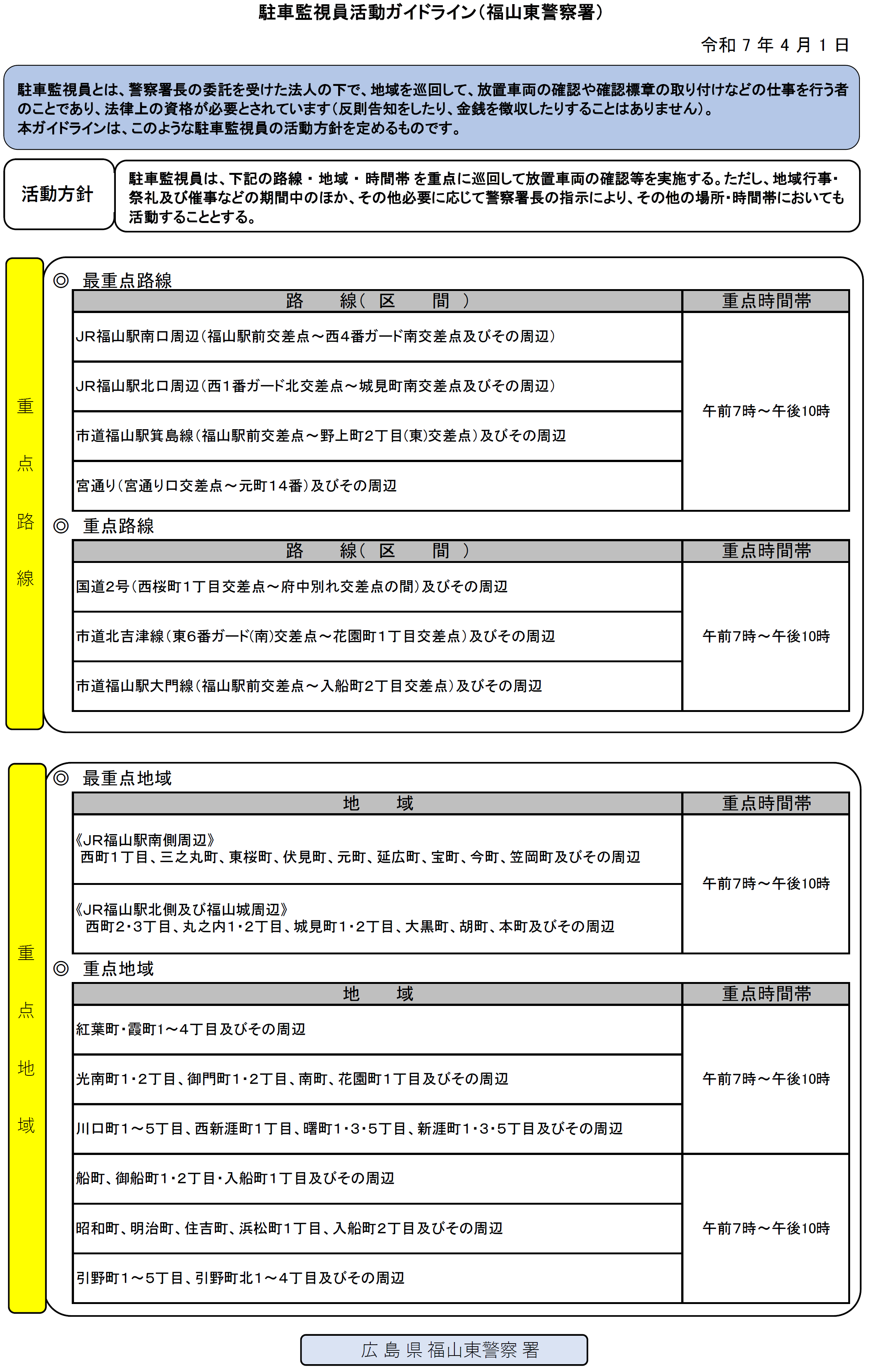福山東警察署 駐車監視員活動ガイドライン - 福山東警察署広島県警察。