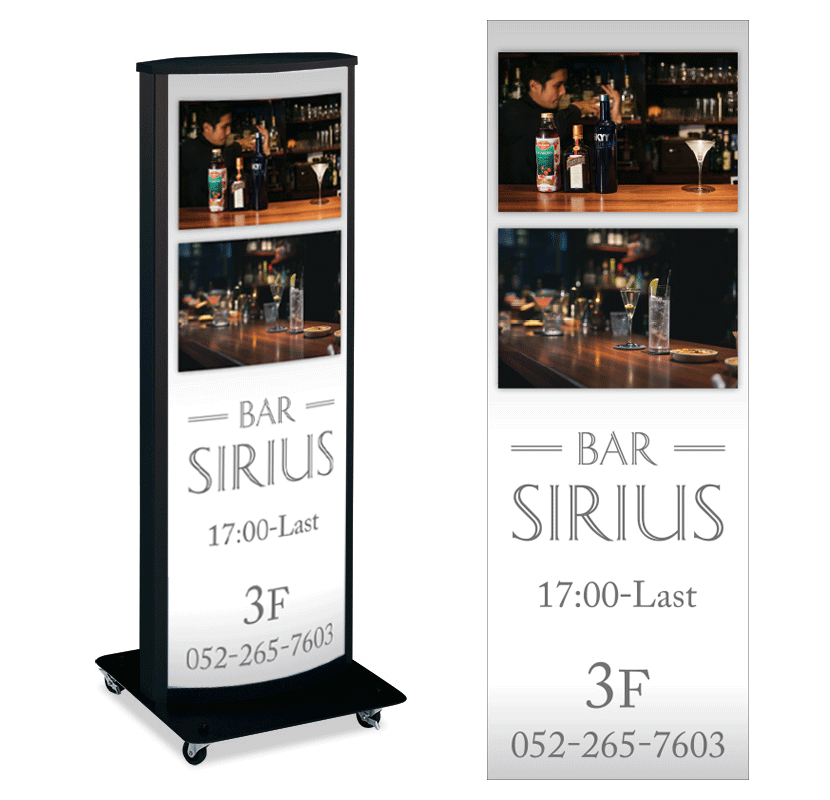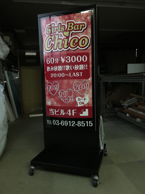 アクリルBOX式のバーのスタンド看板-施工実績名古屋・愛知の看板制作のイチゴスタジオ。