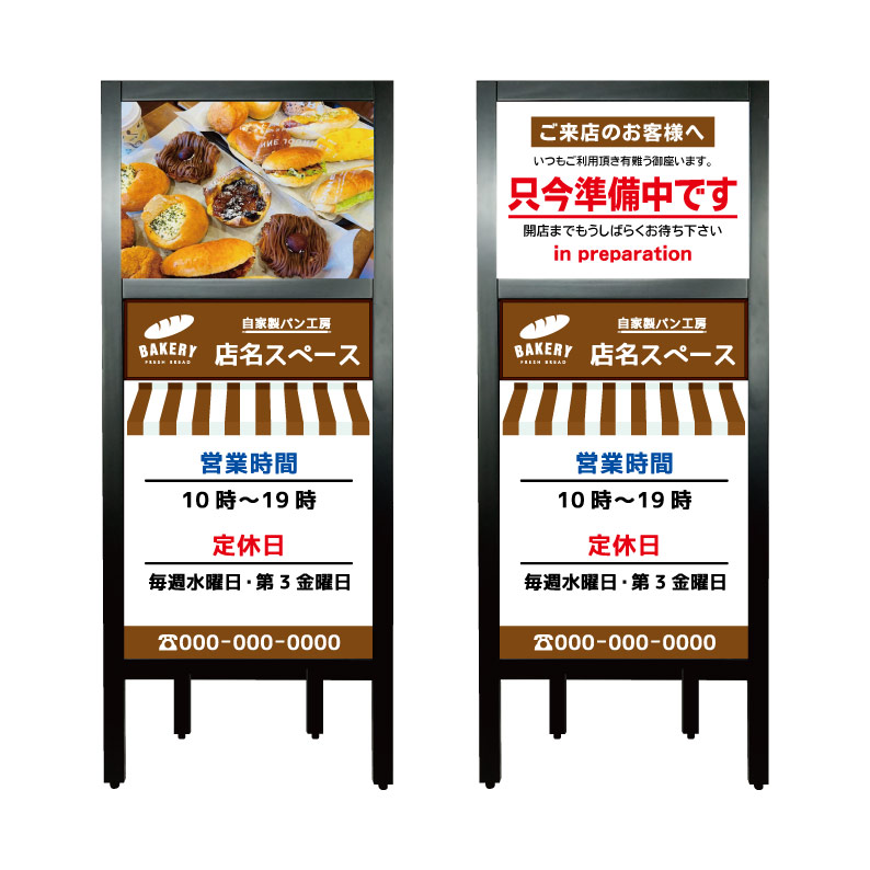 バー BAR 居酒屋 飲み屋 立飲み 看板営業中 OPEN 定休日 臨時休業 本日休業 本日終了 準備中 貸し切り 満席 黙食 飛沫防止マスク着用 アルコール消毒 モーニング ランチ テイクアウト A型 立て看板 スタンド看板 案内看板 店舗用 自立 屋外 省スペース パン屋 パン。