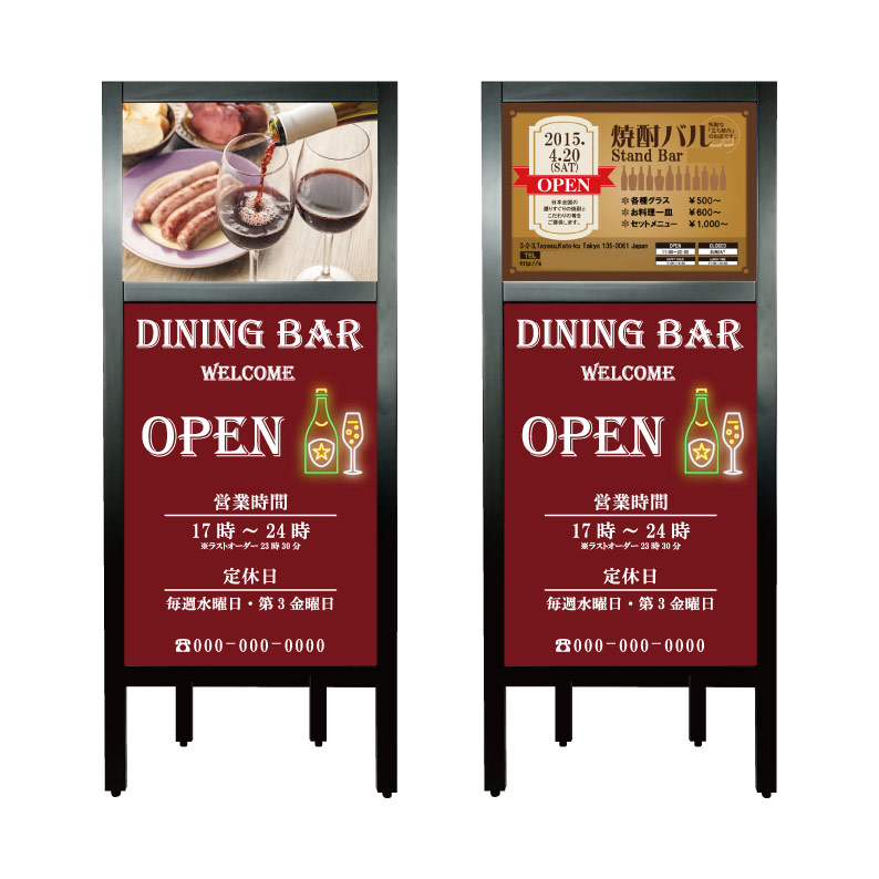 居酒屋 飲み屋 立飲み 看板営業中 OPEN 定休日 臨時休業 本日休業 本日終了 準備中 貸し切り 満席 黙食 飛沫防止 マスク着用アルコール消毒 モーニング ランチ テイクアウト A型 立て看板 スタンド看板 案内看板 店舗用 自立 屋外 省スペース 楽天市場バー BAR。