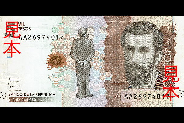 コロンビア 5000 ペソ 2018 P-459 未流通紙幣 UNC - 07.24.2018 Colombia 5000 Pesos 2018。
