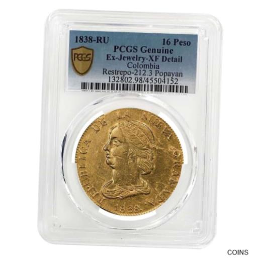 コロンビア 16ペソ金貨 1838-RU PCGSファイルリム-AU詳細1838-RU コロンビア 16 ペソ。