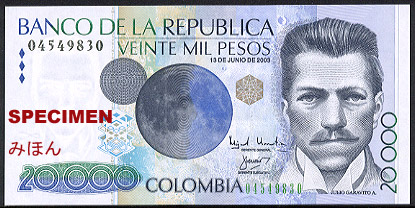 コロンビア・ペソ紙幣 2万ペソ149348291 の写真素材 - アフロ。