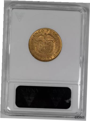 1920 コロンビア ペソ 5P ゴールド ANACS 認定 MS 61 ミントステート UNC072 1920 A COLOMBIA。