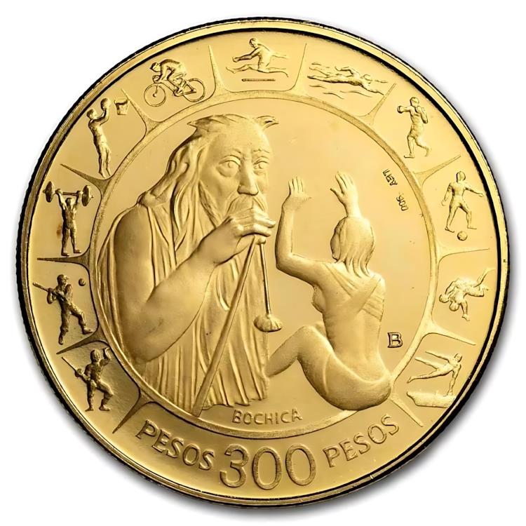 コロンビア 1971年 100ペソ 記念プルーフ金貨。