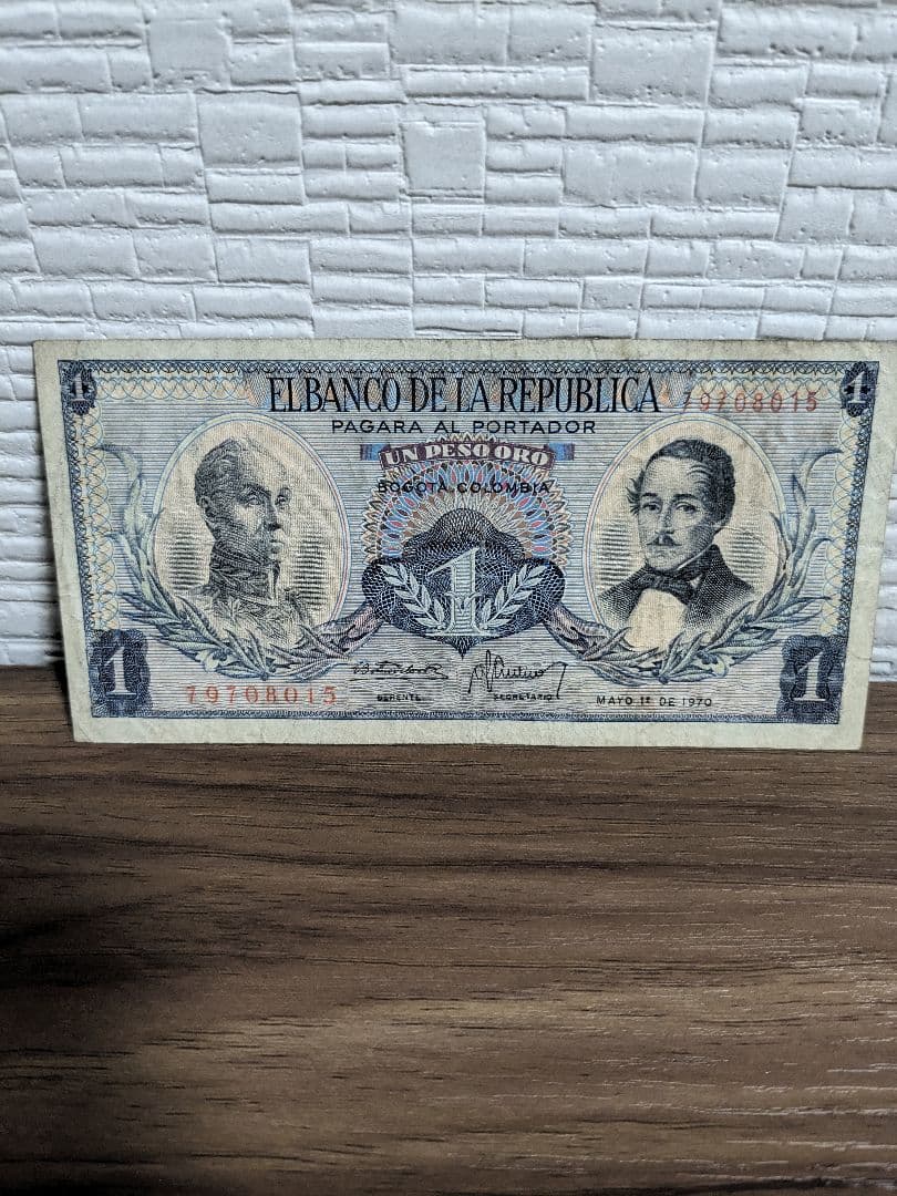コロンビア 旧紙幣 1ペソ 海外旧紙幣 アンティーク。