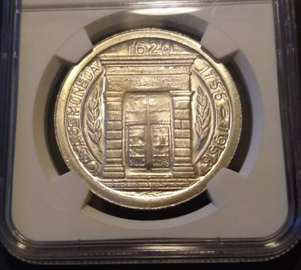 1956 コロンビア ペソ NGC MS66 ポパヤン造幣局 200 周年記念 世界銀貨。