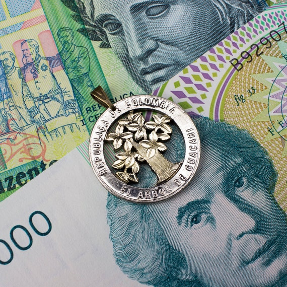 コロンビア 500 ペソ カットコインペンダント コロンビアネックレス 聖なる木 グアカリ詳細なカット- Etsy 日本。