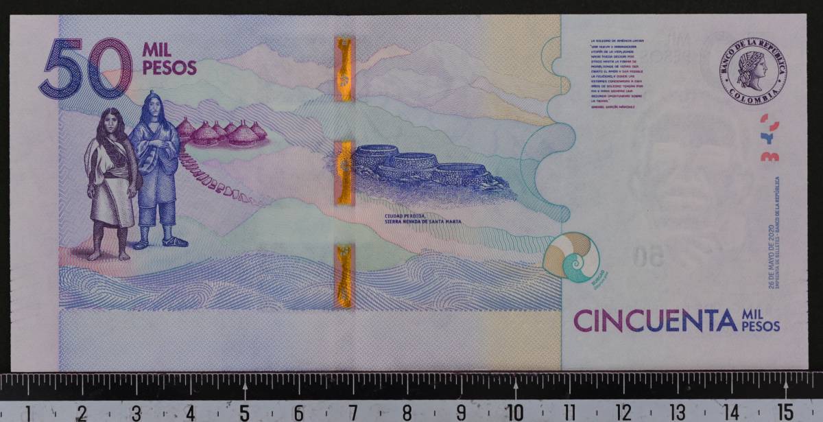 外国紙幣 コロンビア 2020年 未使用 50000ペソ。