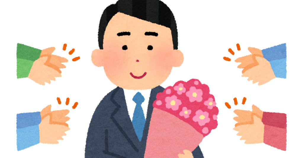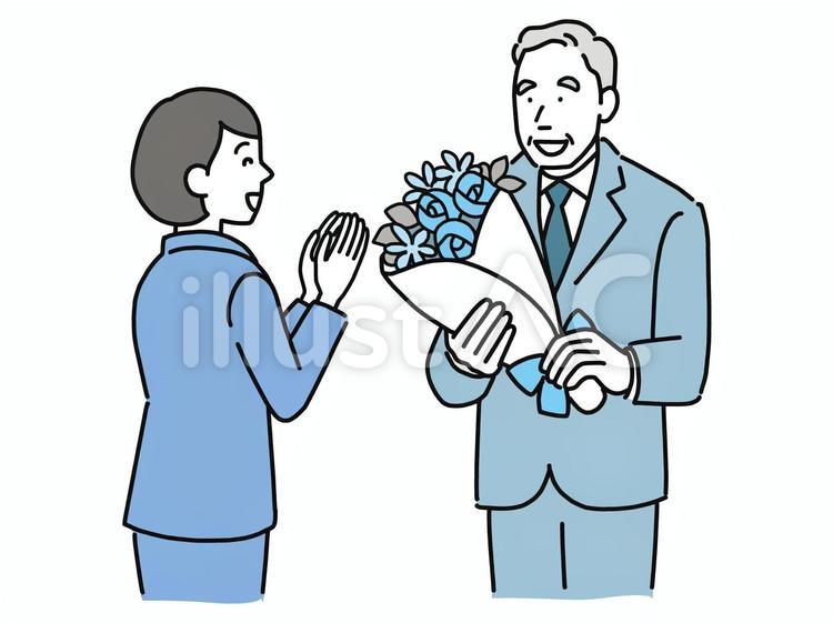 定年退職で花束をもらう男性イラスト - No: 22386682無料イラスト・フリー素材なら「イラストAC」。