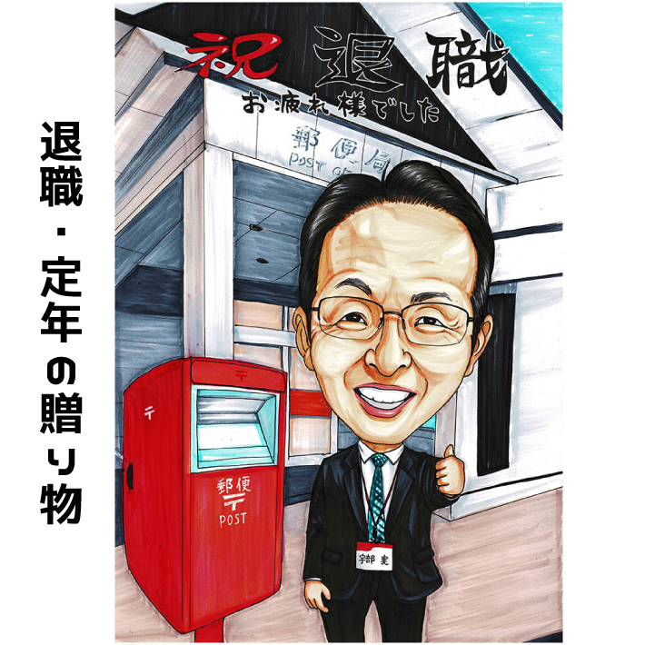 定年、退職祝いの記念品、プレゼントとして人気の似顔絵 お世話になった上司や同僚の退職 、新しい門出に向けた感謝の気持ちを込めたプレゼントになります。その他あらゆるイベントに対応可な色紙に描くかわいい手書きの似顔絵イラスト。サプライズプレゼント、名入れ。