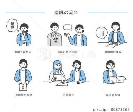退職の流れのイメージイラスト素材のイラスト素材86873162- PIXTA。
