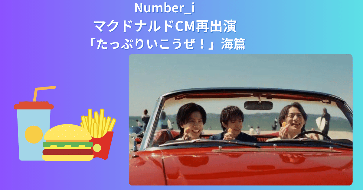 Number_i ナンバーアイ マクドナルド新CM放映!「たっぷりいこうぜ!海」篇 - クマノミ気まぐれblog。