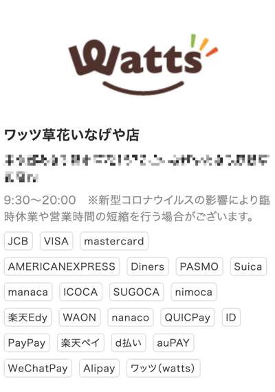ワッツ ミーツ・シルク の支払い方法 - クレジットカード&電子マネー&QRコード決済情報 現金いらず。
