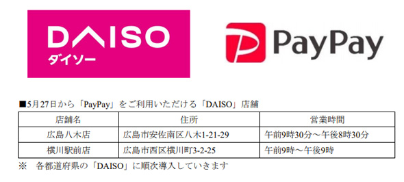 スマホ決済サービス「PayPay」を一斉導入お知らせDAISO ダイソー 公式企業サイト。