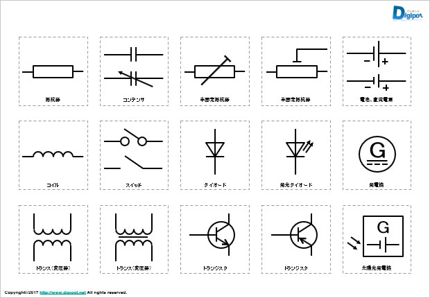 電気用図記号パーツ 電気記号 パワーポイントフリー素材フリー素材、無料素材のDigipot。
