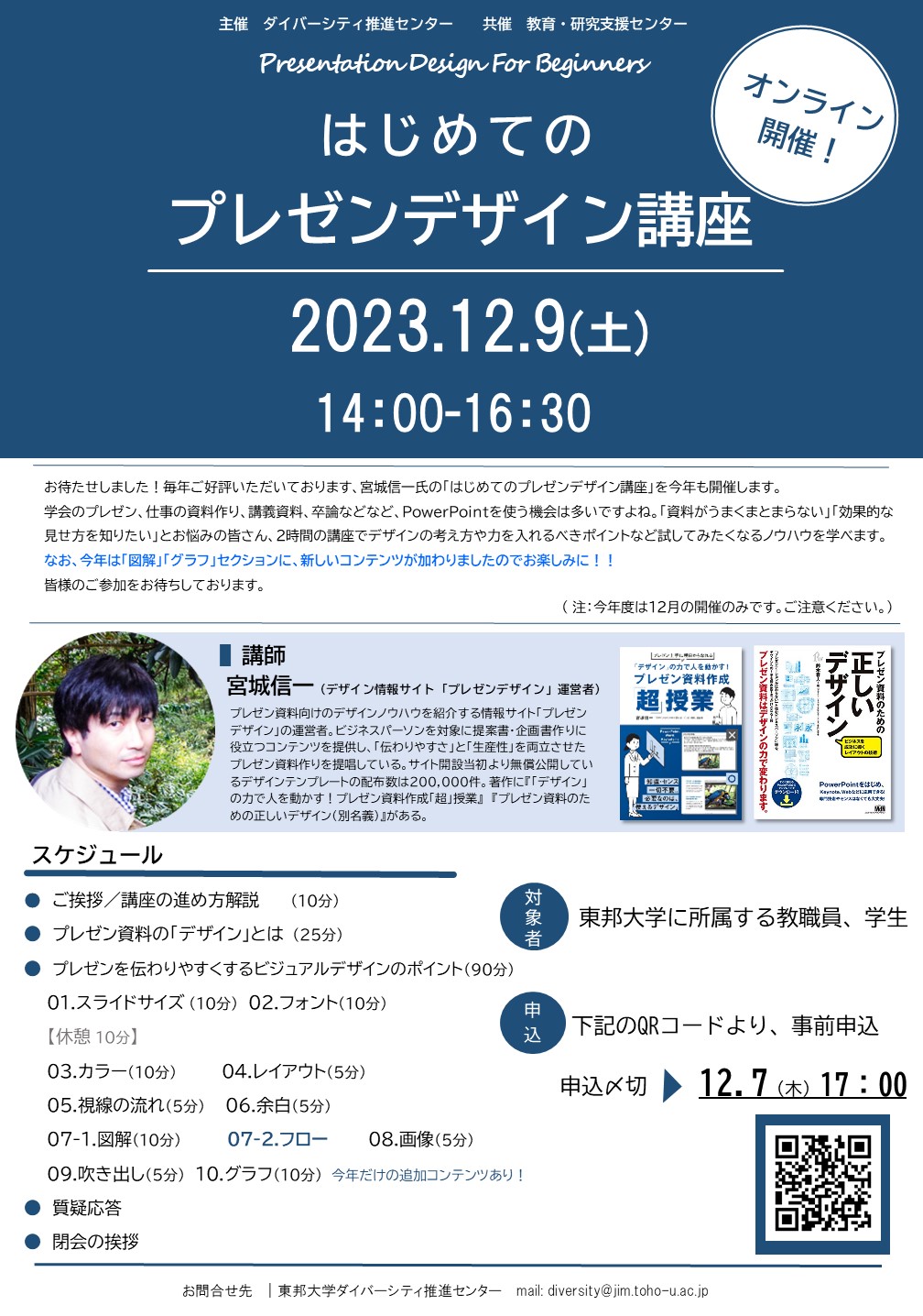 はじめてのプレゼンデザイン講座 アーカイブ配信のお知らせイベント・セミナー東邦大学ダイバーシティ推進センタ。