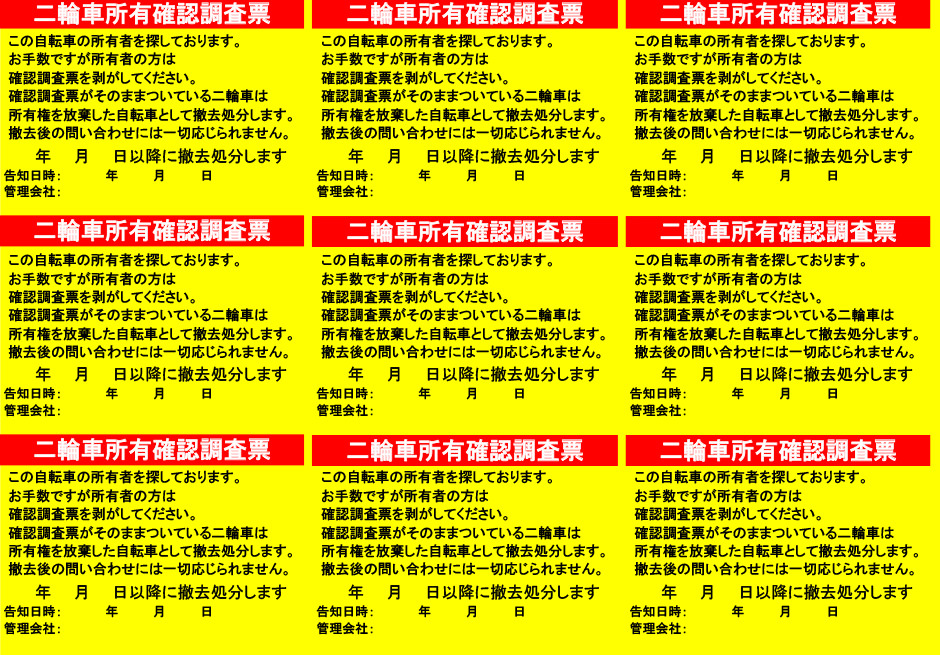 放置自転車撤去警告文の張り紙テンプレート3例文を無料ダウンロード - テンプレートの無料ダウンロード。