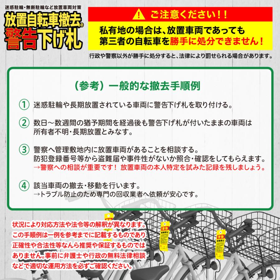 放置自転車撤去の警告下げ札 迷惑駐輪・無断駐輪など放置車両対策 屋根下推奨 非耐水タイプ 30枚入り メール便対応 :オリジナル印刷・販促のWTP企画 - 通販 - Yahoo!ショッピング。
