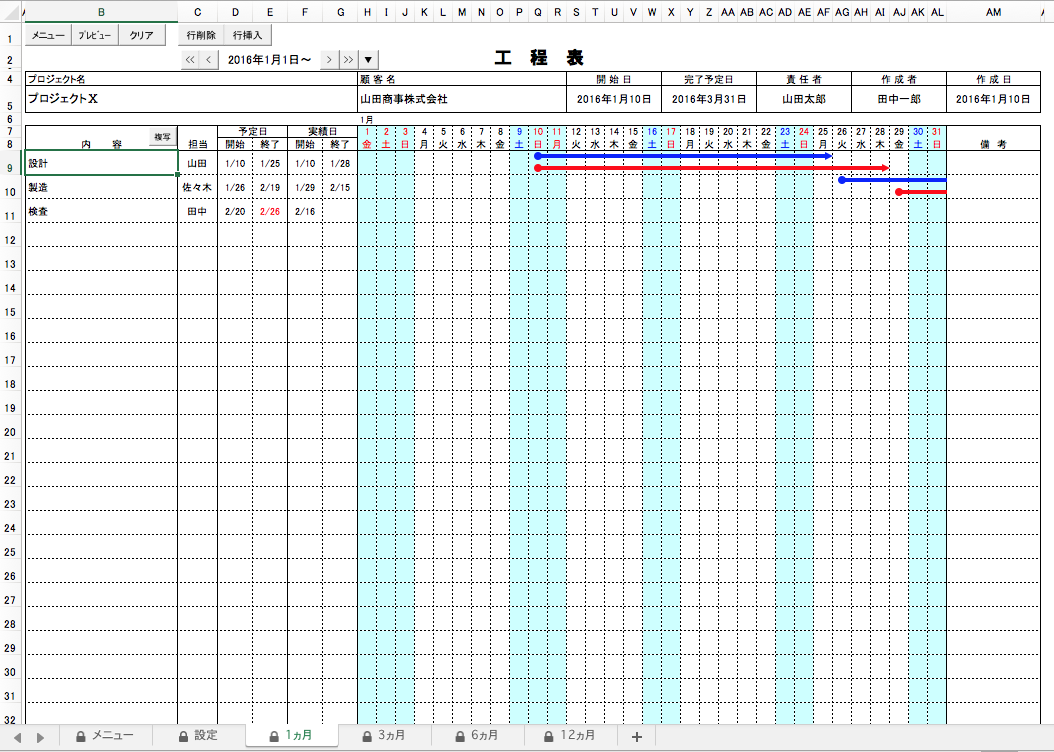 マクロで作成した工程表のフリーエクセルテンプレートOffice Hack。