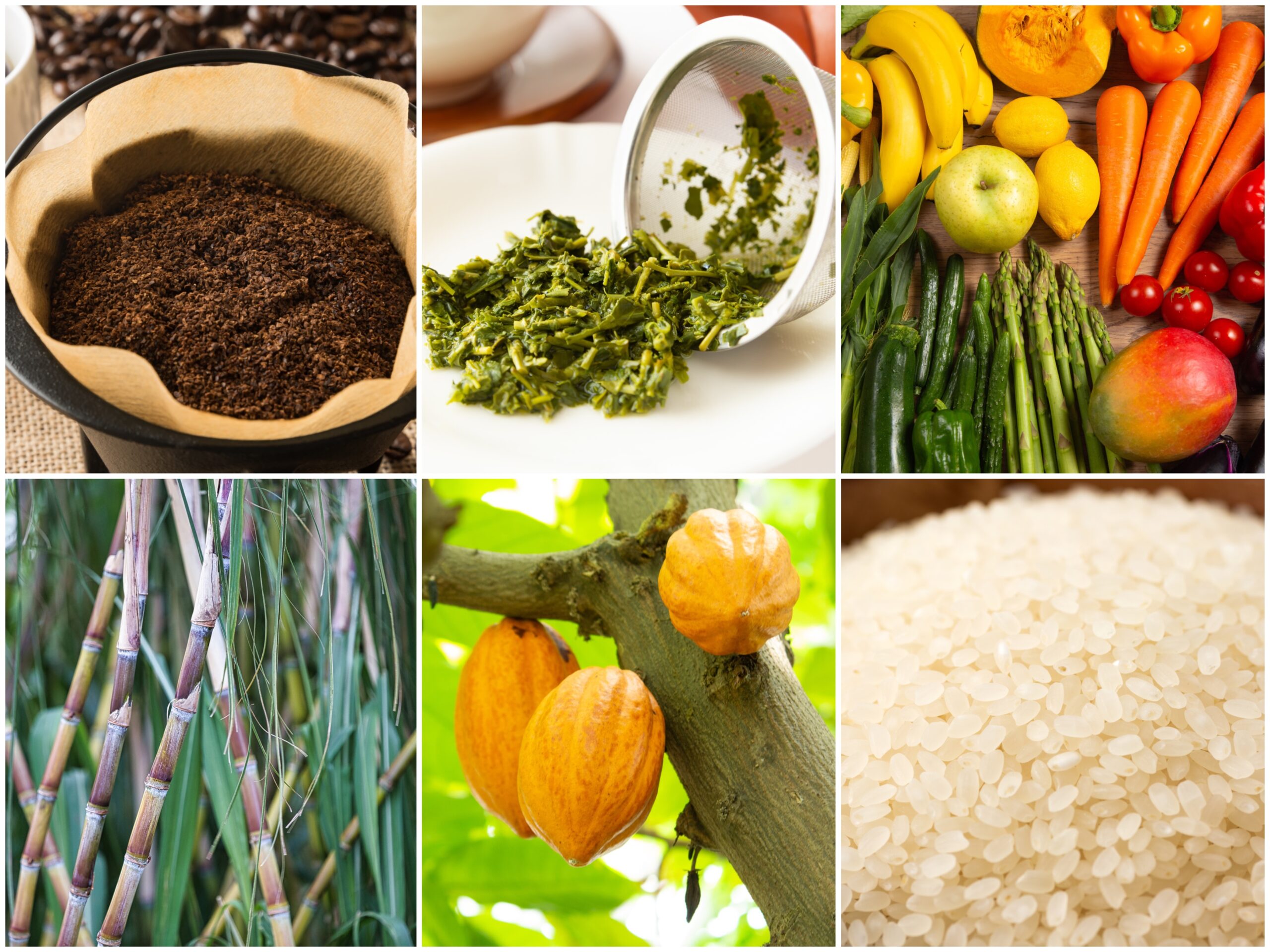 廃棄食材から生まれるエコ素材一覧。コーヒー粉、野菜・果物などのリサイクルで新たな資源にサステナブルグッズ・アメニティ制作「SUSPRO」公式サイト。