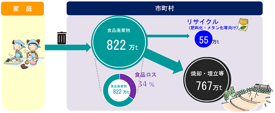 日本の食料のマテリアルフロー中学生・高校生・市民のための環境リサイクル学習ホームページ。