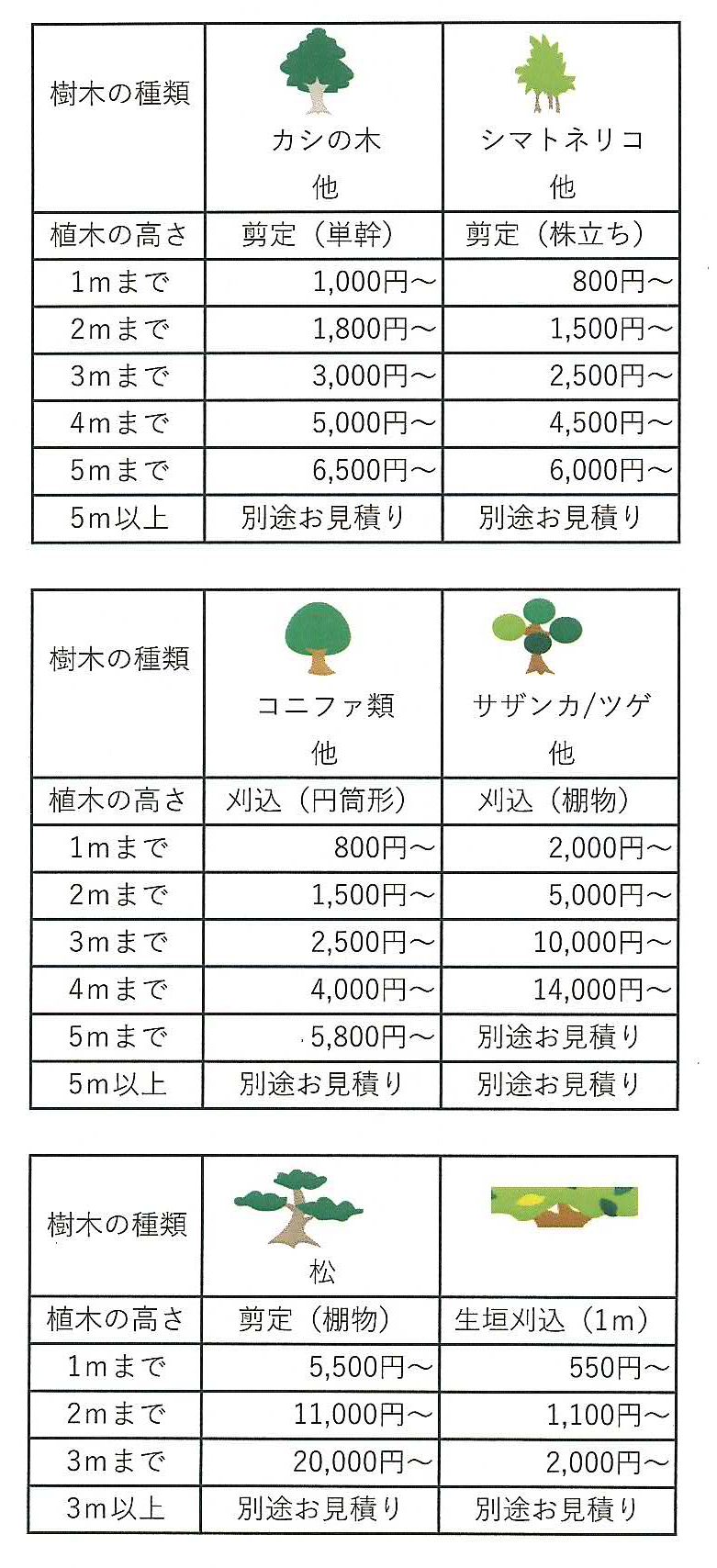 料金表庭木のお手入れ・植木の移植・剪定ガイド。