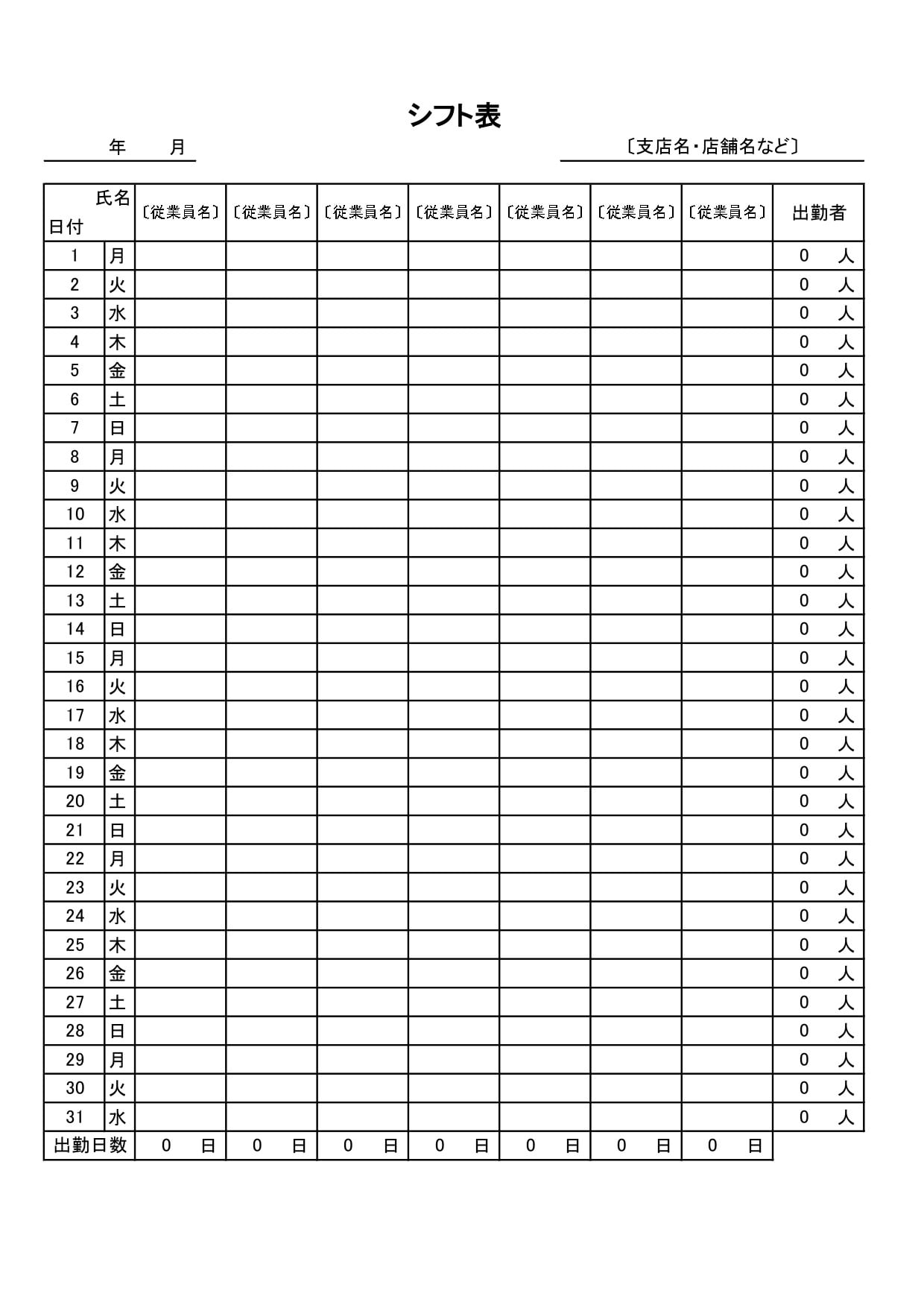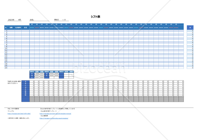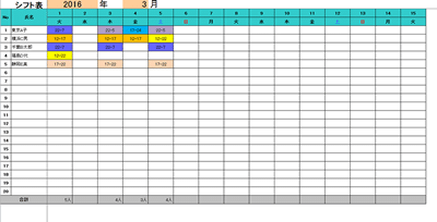 シフト管理表月別・日別- 無料テンプレート公開中 - 楽しもう Office。