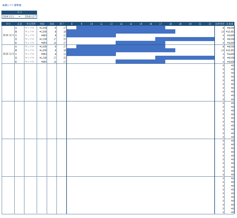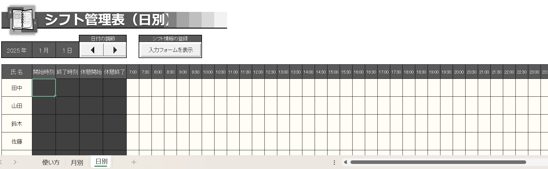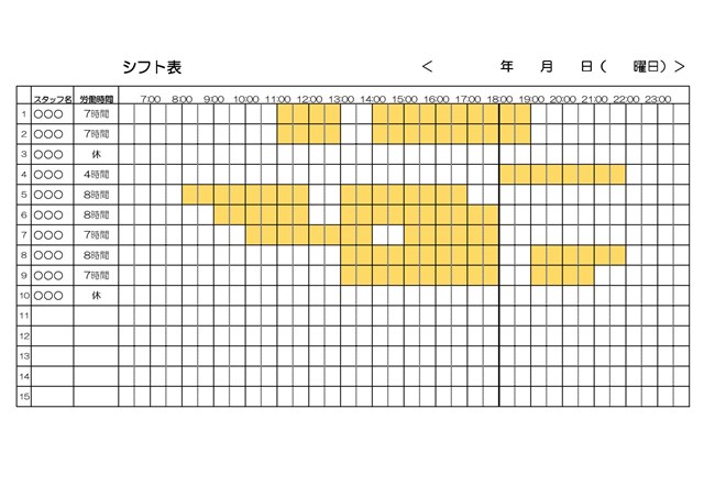 エクセル シフト表1日分テンプレート 雛形無料イラスト素材素材ラボ。