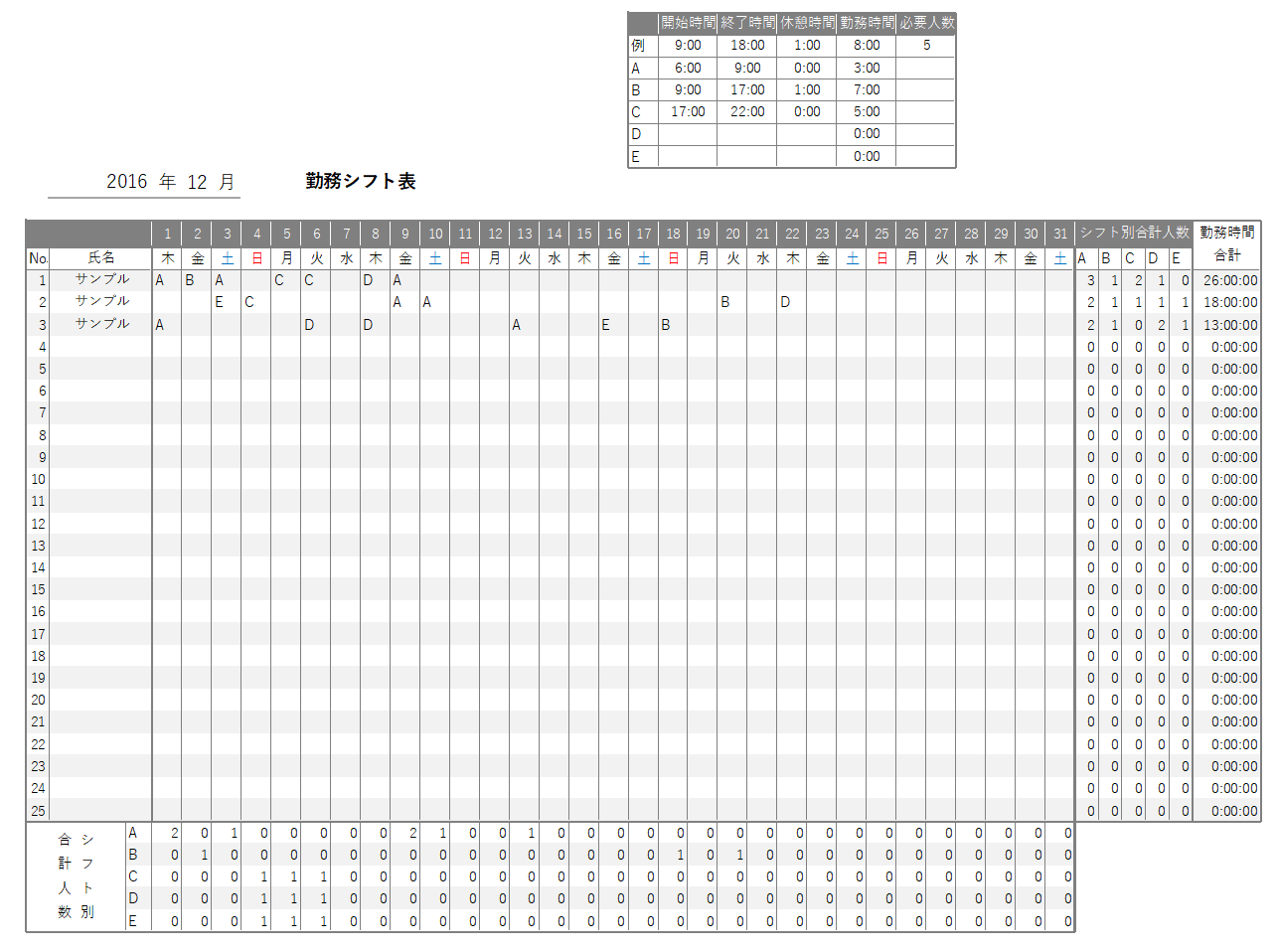 シフト管理表の作成ポイントとExcel エクセル テンプレートご紹介書式の例文書き方コラムbizocean ビズオーシャン ジャーナル。