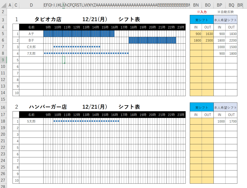 無料Excelテンプレート 複数店舗のシフト表管理・複数店舗シフト希望管理│ エクセルテンプレート 気ままに配信中♪ Byエクセルママ。