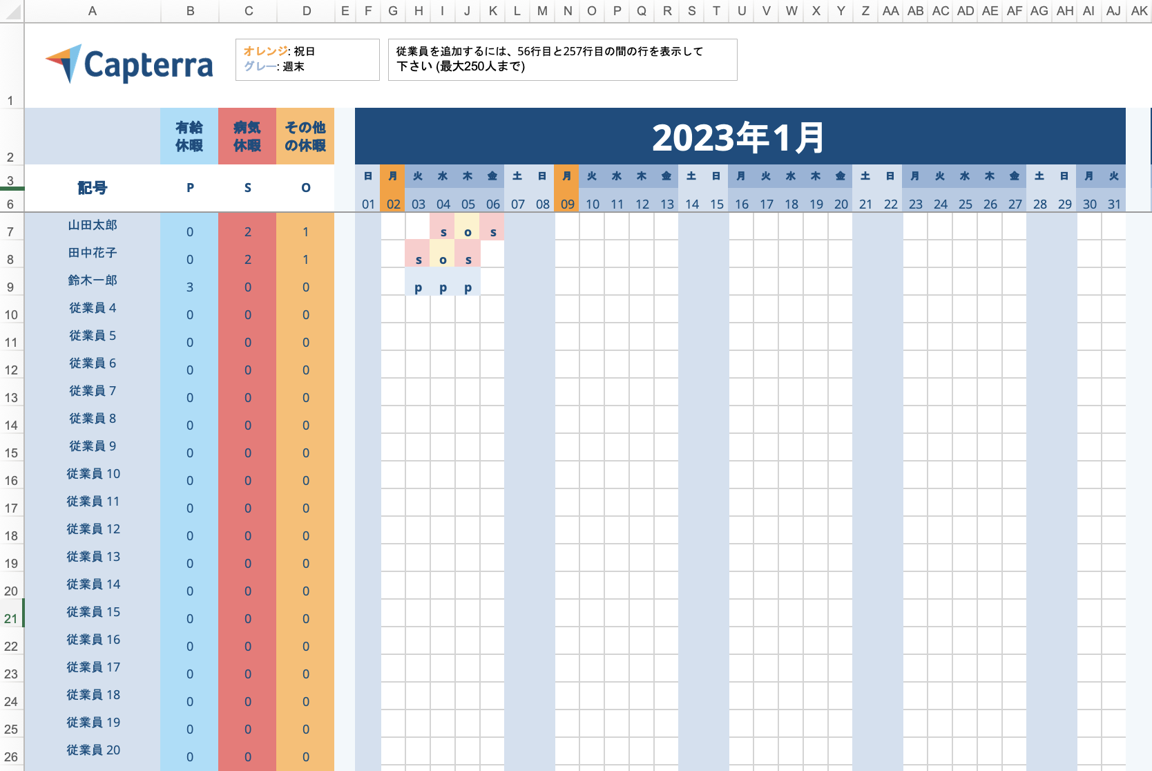 無料テンプレート エクセルシートでシフト表の悩みを解決! - Capterra。